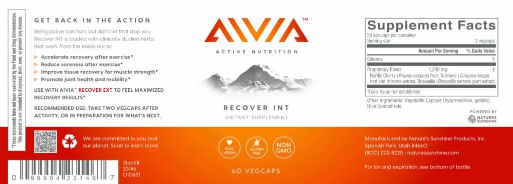 Get back in the action! With Nordic cherry fruit plus extracts of both turmeric and boswellia, AIVIA® Recover INT (internal) reduces soreness and speeds recovery after exercise.