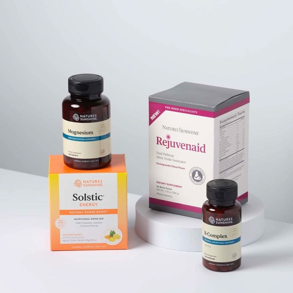 Our Energy bundle features a patented, clinically studied hero product and a complement of others. Together they boast key nutrients that support energy production, increase stamina, boost mental clarity and help offset stress.
