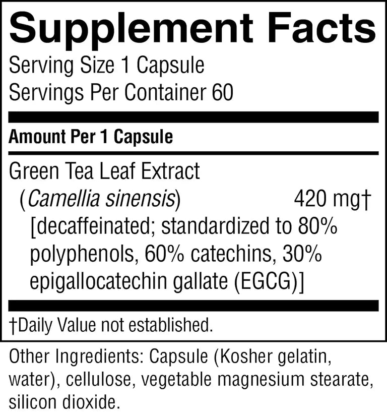 Each capsule contains 400 mg. green tea extract standardized to contain the necessary phytonutrients.