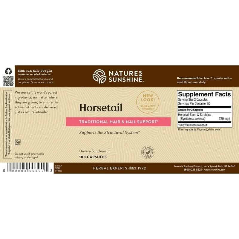 Each capsule contains Horsetail Herb (Equisetum arvense) 360 mg