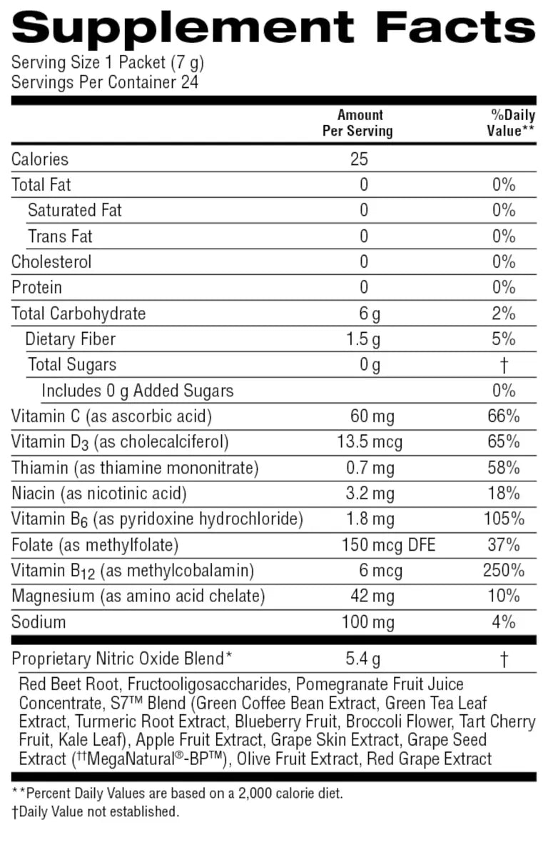 In a 90-day double blind, peer-reviewed clinical study, the S7® blend used in Power Beets was found to significantly increase blood circulating NO with once-daily supplementation compared to placebo.