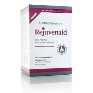 A natural, clinically studied, nitric oxide-generating supplement, Rejuvenaid safely produces and sustains superior levels of NO. Unlike other NO products,this patent-pending formula uses a dual system featuring a proprietary beet root extract along with L-Arginine. This dual-pathway approach freesup the body’s ability to produce its own NO while using the ingredients to generate even more NO. Rejuvenaid also features a proprietary, polyphenolrich antioxidant blend called Herbal Shield that offers select vitamins to help sustain higher levels of NO and support circulation. Dual Pathway Nitric Oxide Generator for Vasodilation and Cardiovascular Health Enjoy youthful vitality with Nature’s Sunshine’s Rejuvenaid a natural, healthy way to achieve and maintain peak physical and mental performance with higher levels of vigor.Clinical studies have shown that higher levels of Nitric Oxide (NO)—a signaling molecule that improves blood flow and circulation by relaxing arteries and blood vessels—are associated with increased vitality, physical performance, stamina, recovery, mental acuity, sexual performance and lower blood pressure. Made in the endothelial layer of blood vessels and arteries, NO is quickly used or oxidized within the body and must be replaced constantly. A sedentary lifestyle, suboptimal diet and age can each negatively impact NO production. (By age 40, the human body produces only half the nitric oxide it did during teen years.) Watch Rejuvenaid Video